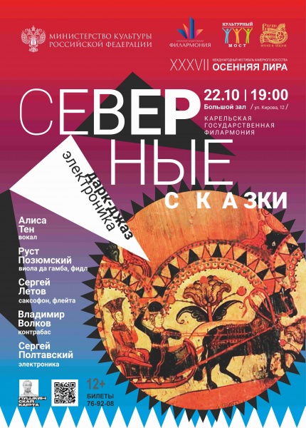 Фестиваль «Осенняя лира» представляет новый необычный проект Сергея Полтавского и его команды музыкантов-единомышленников. Что получится, если соединить русские обрядовые песни, старинные музыкальные инструменты, современные музыкальные стили и обволакивающий электронный фон? Как звучат сказки архангельской области из сборника Н. Ончукова на музыкальном языке дарк-джаза и электроники? Когда мы говорим слово «джаз», то ждем атмосферу радости и свободы, нечто энергичное, непредсказуемое. Дарк-джаз противоположен джазу классическому, в этом появляется магия и красота экспериментов, постоянные поиски нового звучания.
