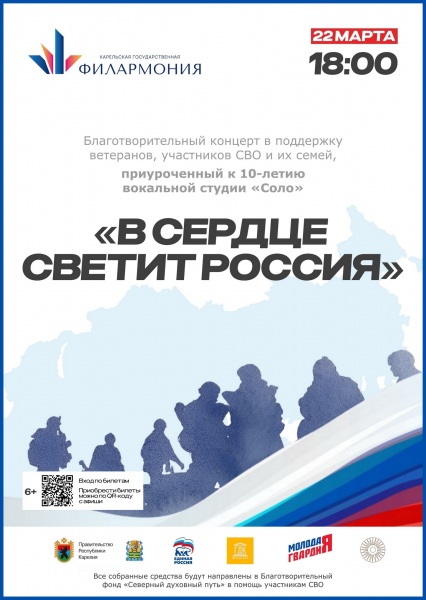 22 марта в Карельской филармонии состоится концерт «В сердце светит Россия», посвящённый 10-летию Вокальной студии «СОЛО». Это благотворительный концерт в поддержку ветеранов, участников специальной военной операции и их семей.