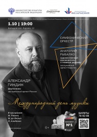 Александр Гиндин – пианист, чьих выступлений с нетерпением ждут в лучших залах мира. Он прославился в 17 лет – в 1994 году стал лауреатом Международного конкурса имени П. Чайковского. В 1999 году музыкант завоевал II премию Международного фортепианного конкурса им. Королевы Елизаветы в Брюсселе. Эти успехи способствовали началу интенсивной концертной деятельности пианиста. Концертный график А. Гиндина необычайно напряжен. Его имя постоянно значится на афишах московских залов. Между выступлениями в Москве с триумфальным успехом проходят его концерты на лучших площадках мира. Стиль артиста отличает виртуозность в сочетании с эмоциональностью и умением передать глубокий смысл и красоту музыки.