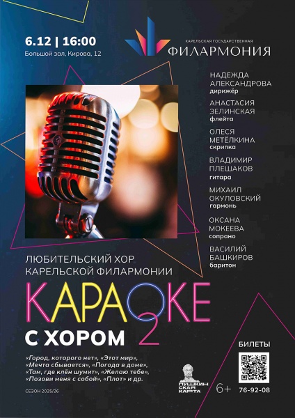 Не секрет, что большинство слушателей на выступлениях Любительского хора тихонько подпевают знакомым песням. Артистам хора это всегда приятно! Для самой отзывчивой публики в новой программе «Песни о главном. Караоке 2 с хором» собраны самые популярные песни XX столетия. Вы впервые сможете дать полную свободу своим лёгким, не опасаясь недовольства соседей, и прочувствовать на себе раскрепощающее и умиротворяющее действие коллективного пения. Наличие слуха и вокальных данных не обязательно. Приходите петь душой вместе с Любительским хором!