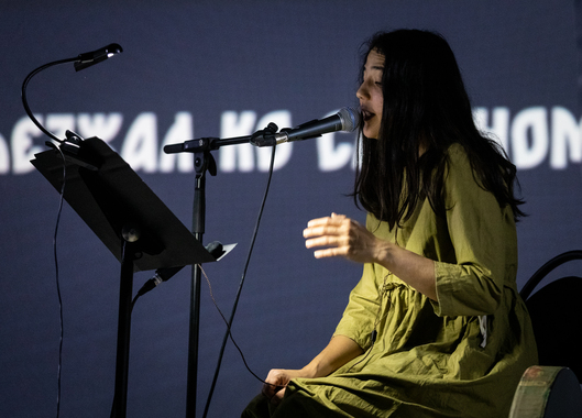 Неожиданным было всё: от груды проводов подключённых электронных примочек до народного говора, с которым Руст Позюмский читал «непричёсанные» тексты народных сказок Архангельской области, сюжеты которых сначала ввели публику в оцепенение, а ближе к концу заставили смеяться. Так, например, у главных героев сказки про братьев Водовичей (Ивана и Фёдора) такое отчество получилось из-за причины беременности их матушки: на царском дворе она выпила воды из золотой чарочки в колодце и «сделалась беременна». Вода – отец. Дети – Водовичи.