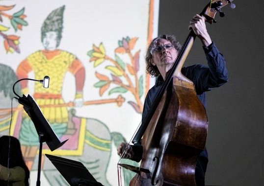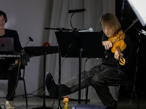 На мультимедийный, электронный, авангардный, импровизационный проект «Северные сказки» собрался почти полный зал зрителей. Имена музыкантов говорили сами за себя, каждый из них – авторитетная фигура в своём направлении, а тут они все вместе на одной сцене, когда ещё такое случится? Сергей Полтавский (перкуссия, live-электроника), Руст Позюмский (фидл, художественное слово), Алиса Тен (вокал), Сергей Летов (саксофон, флейта), Владимир Волков (контрабас).