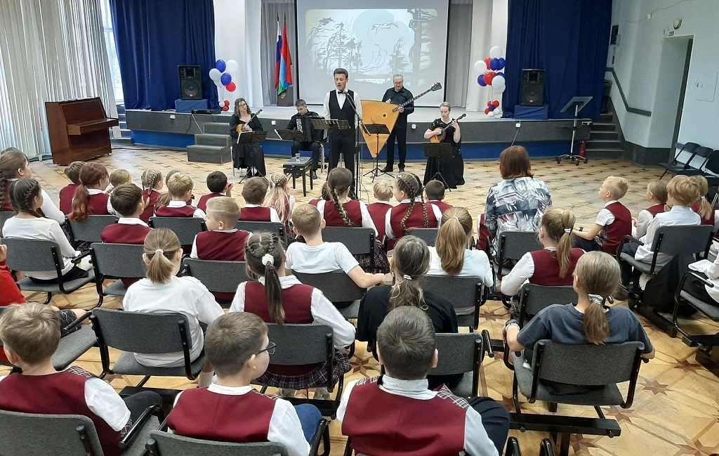 Премьера сюиты московского композитора Александра Чайковского «Калевала» в исполнении Оркестра «Онего» уже состоялась в Петрозаводске (25 июня) и Санкт-Петербурге (13 сентября). А 26 сентября камерная версия сюиты, созданная для Квартета русских народных инструментов «Четыре четверти», прозвучала в Костомукше. В концертном зале МБОУ КГО «Гимназия» произведение услышали ученики и педагоги. Литературную составляющую – руны эпоса «Калевала» - исполнил заслуженный артист Карелии Александр Картушин.