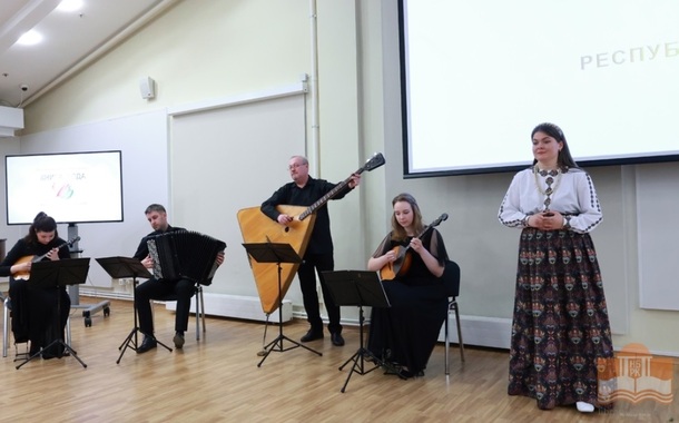Музыкальным подарком гостям церемонии «Книга года – 2025» стало выступление артистов Карельской филармонии – Софии Вороны и Квартета русских народных инструментов «Четыре четверти». Два вида искусства – музыка и литература – всегда идеально дополняют друг друга.