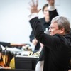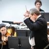 На сцене: Симфонический оркестр Карельской филармонии, дирижёр Анатолий Рыбалко, солист Олег Вайнштейн.