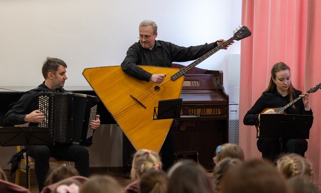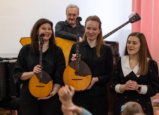 Концерты детского абонемента «Оркестр на ладони» — это всегда открытия и новые знания о самых разных музыкальных инструментах. 8 февраля девчонки и мальчишки познакомились с постоянными участниками оркестра русских народных инструментов: домрой, баяном и бас-балалайкой. Увлекательные музыкальные истории поведала команда концерта: музыковед и ведущая Александра Поздеева и Квартет русских народных инструментов «Четыре четверти». Ребята активно участвовали в обсуждении тонкостей звукоизвлечения и конструкций инструментов, отвечали на вопросы ведущей.