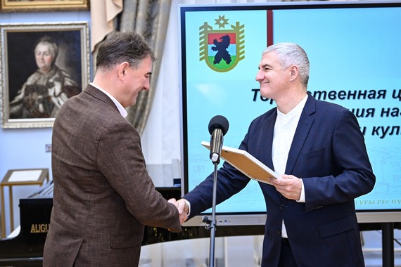 Благодарность Министра культуры России Ольги Любимовой Артур Парфенчиков вручил легенде и старейшему сотруднику филармонии – начальнику отдела организации концертов Татьяне Георгиевне Шерудило.