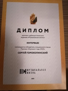Специальный приз Всероссийской премии «Органист года – 2025» наш!