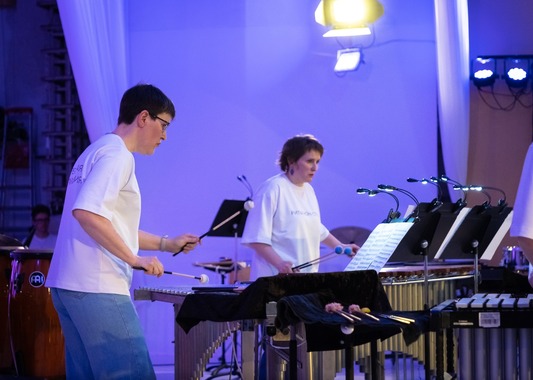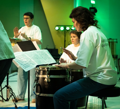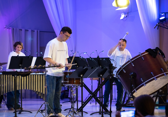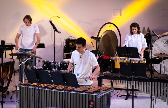 Чудо непрерывного пульса ритма и музыки творили заслуженные артисты Республики Карелии Ольга Косырева и Григорий Неверов, лауреаты международных конкурсов Надежда Алова, Никита Литвинов и Мария Телятникова. К опытным коллегам присоединились молодые перкуссионисты и ударники: студент Музыкального колледжа при Петрозаводской государственной консерватории им. Глазунова Михаил Сухов, студентки Музыкального колледжа им. Раутио Алёна Семёнова и Мария Мельникова, студенты Петрозаводской государственной консерватории им. Глазунова Владислав Терентьев, Максим Катенков, Михаил Денисов, Эсмеральда Диденко и Софья Мартин.