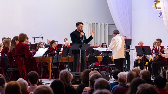 Концерт праздничного цикла «Мелодии для любимых» назывался «Мелодии счастья». Солировал в этот вечер Сергей Дудинский (тенор, Москва). Выступления Сергея Дудинского – это всегда океан нежности, обаяния, безудержной энергии и максимально открытого общения с публикой. Его любят женщины всех возрастов, а он отвечает им взаимностью и теплотой. Концерт закончился, а мы продолжаем получать благодарные отзывы наших слушателей о прекрасной праздничной программе.
